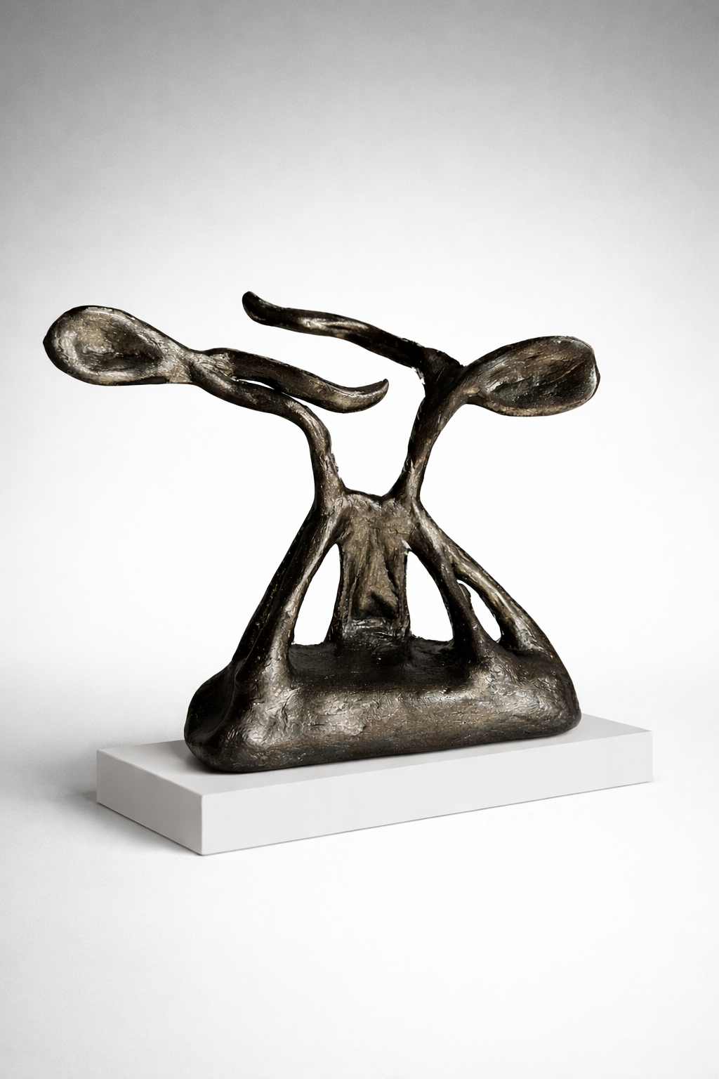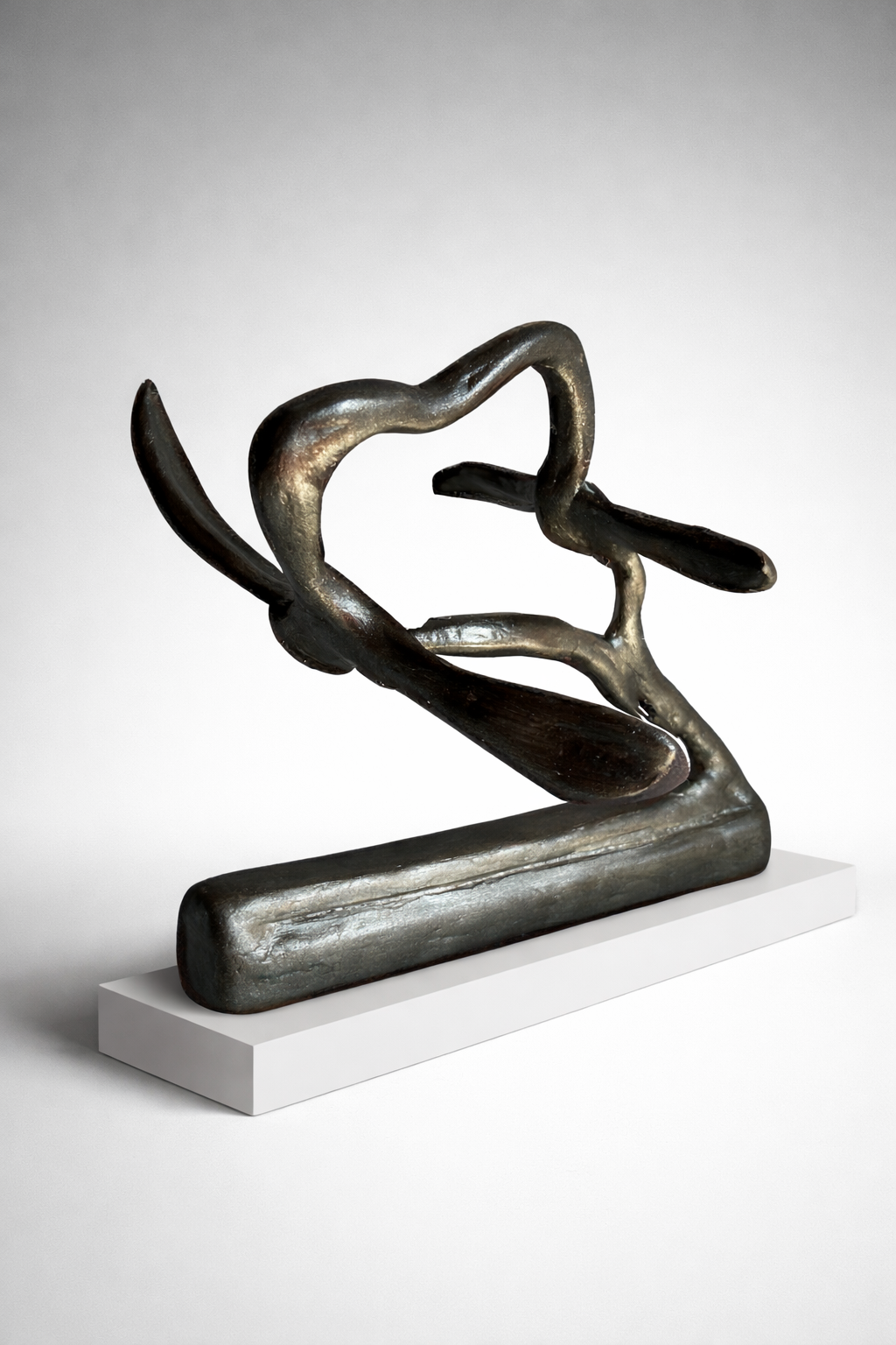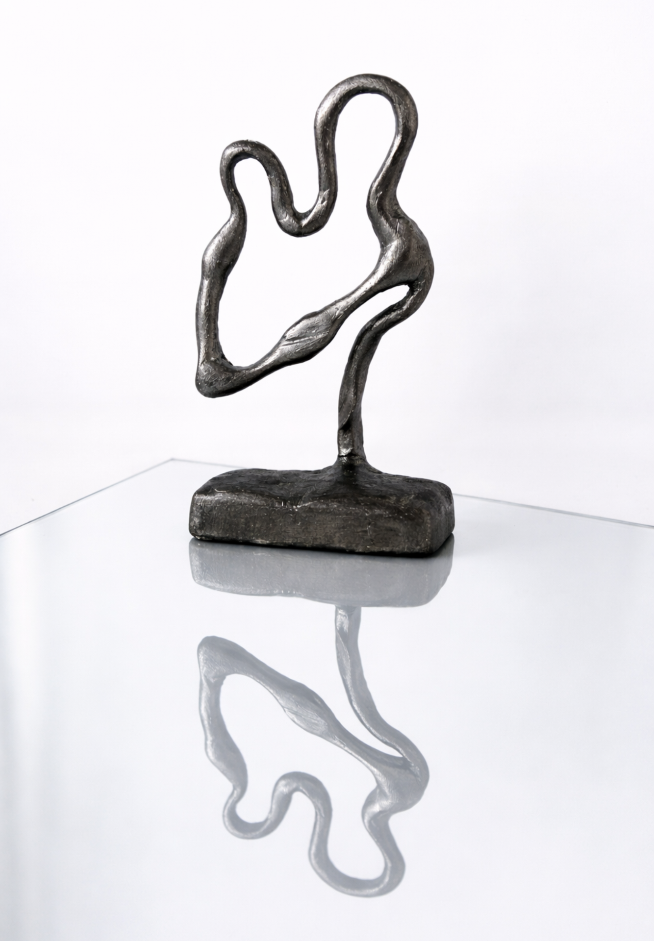 Tyto plastiky představují organickou, plynoucí formu, která se pohybuje na hranici mezi abstrakcí a náznakem figurálního motivu. Dynamická linie vytváří uzavřený, avšak zároveň otevřený prostor, jako by zachycovala moment propojení, doteku nebo vnitřního dialogu. Tvarosloví evokuje pohyb, energii a proměnlivost, přičemž absence ostrých hran podtrhuje jemnost a kontinuitu celku.